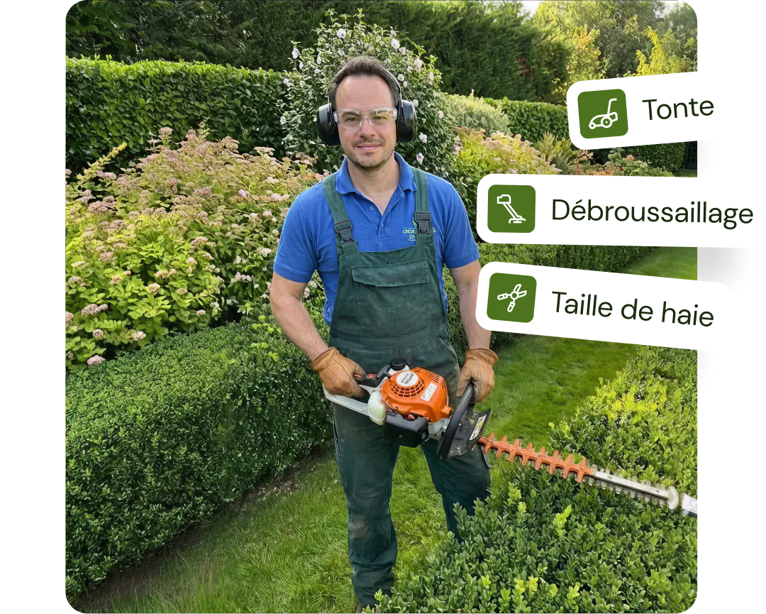 Accueil Brabant Wallon centre Faites entretenir votre jardin par un professionnel Confiez-moi l'entretien de vos espaces verts : j'interviens avec passion, savoir-faire et respect de la nature pour un jardin impeccable et accueillant. Noté 5/5 sur Google ★★★★★ Demander un devis Services Mes services sur mesure pour votre espace vert idéal Tonte Je tonds votre pelouse avec soin et matériel adapté, pour un gazon net et des finitions précises. Débroussaillage Je débroussaille les zones envahies pour redonner de l’air à vos plantes et assurer leur bien-être. Taille de haie Pour des haies harmonieuses, je taille avec précision et respecte la saison pour structurer votre jardin. Vous avez un chantier particulier ? Prenez-contact pour en discuter Devis gratuit Zone d’intervention J’interviens dans ces différentes communes (mais également dans un rayon de 15km), afin de toujours pouvoir intervenir rapidement chez vous. 1410 Waterloo 1420 Braine-l’Alleud 1380 Lasne 1310 La Hulpe 1440 Braine-le-Château 1330 Rixensart 1470 Genappe 1400 Nivelles Ce que disent mes clients Lisez les témoignages de mes clients satisfaits et découvrez la qualité de mes prestations d'entretien. Voir mes réalisations Publié sur Samy Belgarbi Trustindex vérifie que la source originale de l'avis est Google. Paysagiste très pro, je recommande ! Pourquoi me choisir ? Découvrez ce qui me distingue : proximité, respect des végétaux et travail soigné. Réactivité Réactif à vos demandes, je planifie mes interventions pour offrir un service fiable et efficace de qualité. Respect des végétaux Je respecte le cycle des plantes et privilégie des méthodes douces pour vos espaces verts. Travail soigné Chaque intervention est réalisée avec minutie et du matériel de qualité pour un rendu propre et durable. Obtenir un devis gratuit Demandez votre devis gratuit et personnalisé pour vos travaux de jardinage, sans engagement ni surprise. Tonte Débroussaillage Taille de haie +32 4 85 98 42 17 owatthy@gmail.com Demande de devisNom et PrénomAdresse e-mailN° de téléphoneLocalisationServices Tonte Taille de haie Débroussaillage AutreMessageEnvoyer ma demande